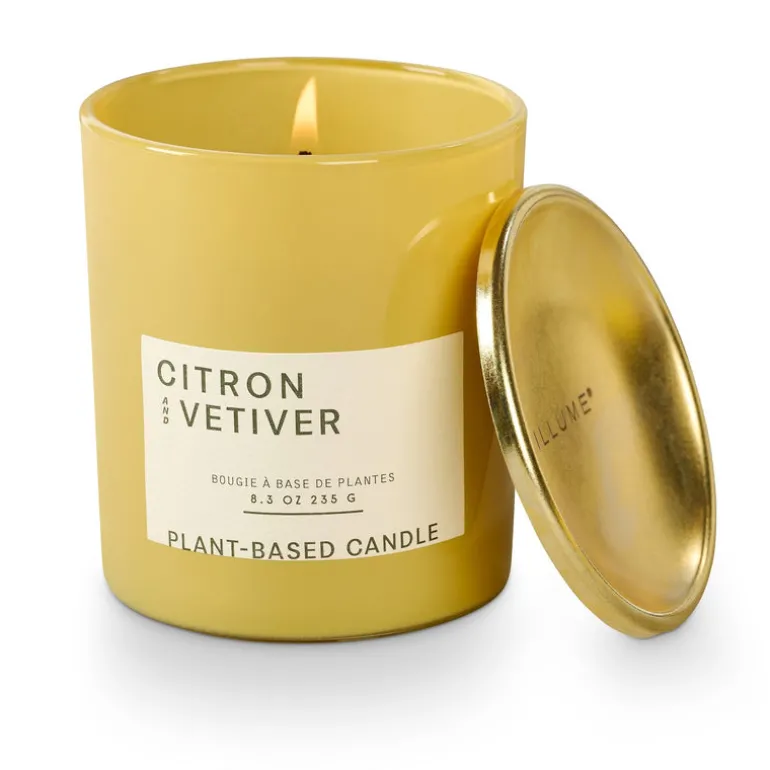A golden glow of citrus, frosted sage, and sueded leather.
