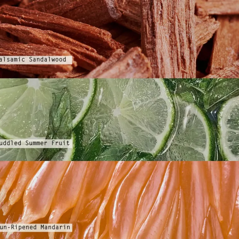 Grounded in balsamic sandalwood, with a heart of muddled summer fruit, and kissed with sun-ripened mandarin.