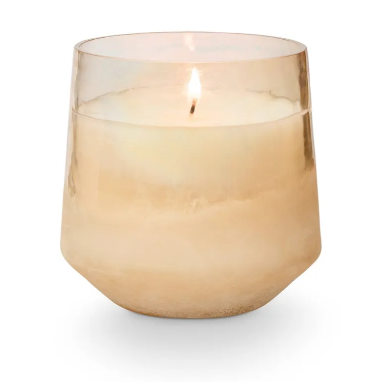 With a salt-kissed finish, the baltic glass is organic and soft in nature, providing a rich glow when lit.