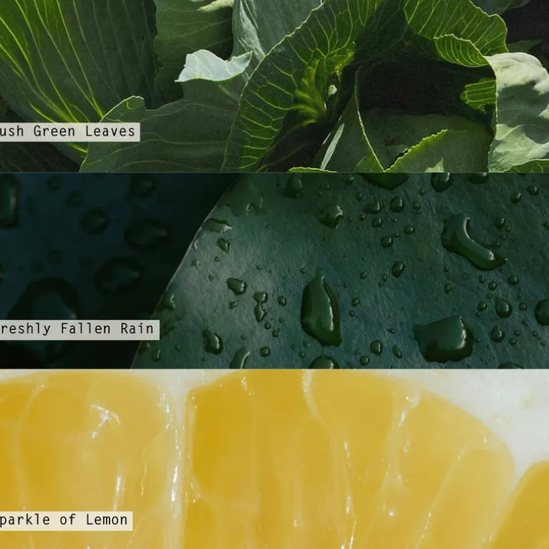 Grounded in lush green leaves, with a heart of freshly fallen rain, and kissed with a sparkle of lemon.