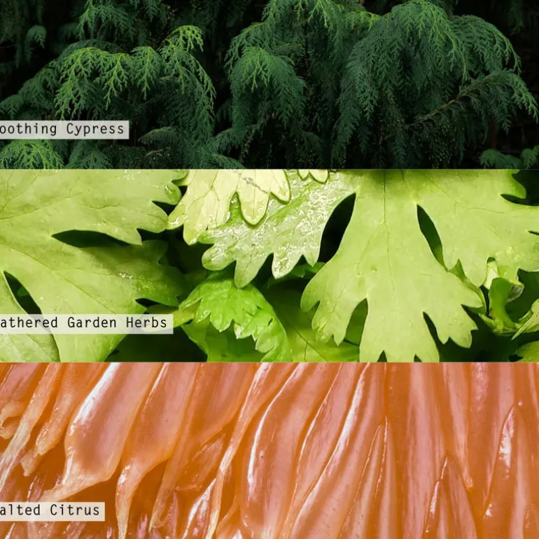 Grounded in soothing cypress, with a heart of gathered garden herbs, and kissed with salted citrus.
