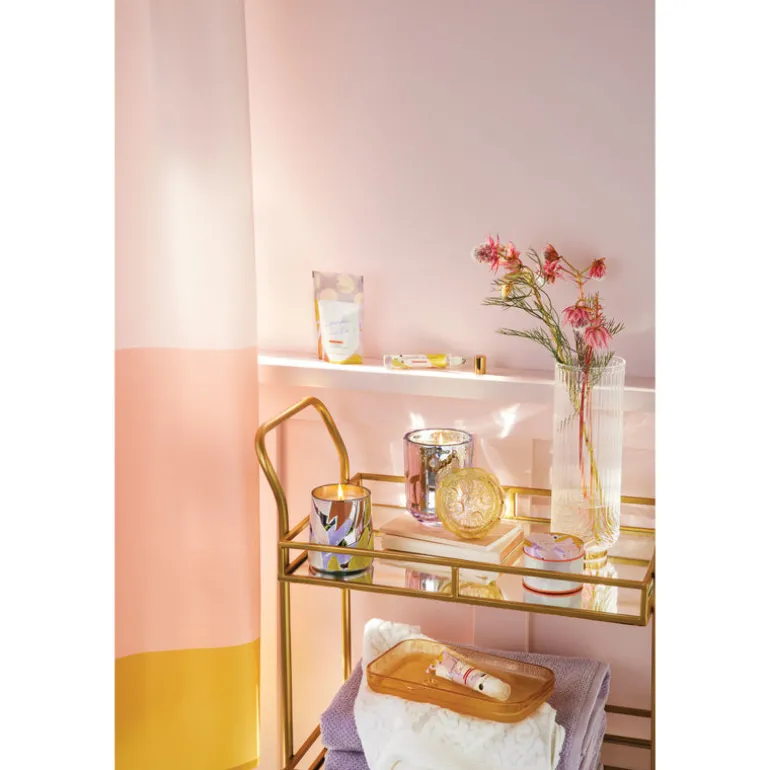 A charming je ne sais quoi of lavender, jasmine, and blonde woods.