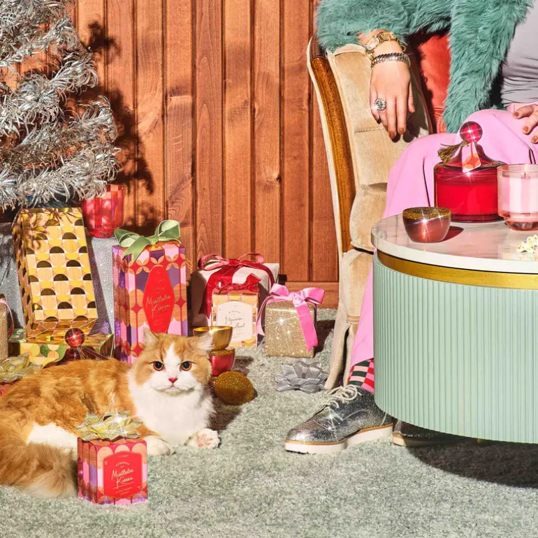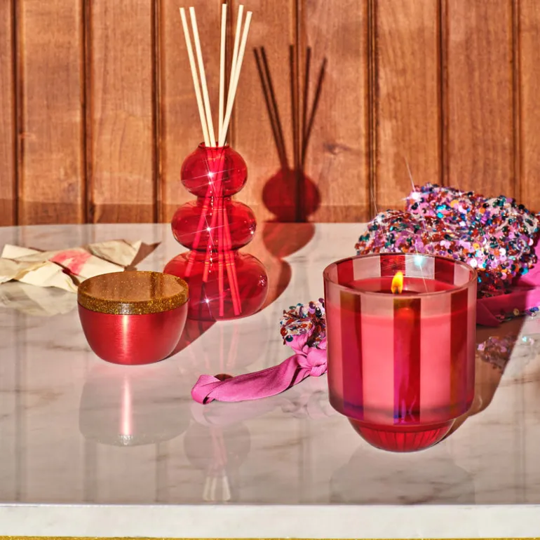 A heartwarming embrace under the garland with notes of zested citrus, sparkling peach, and green leaves.