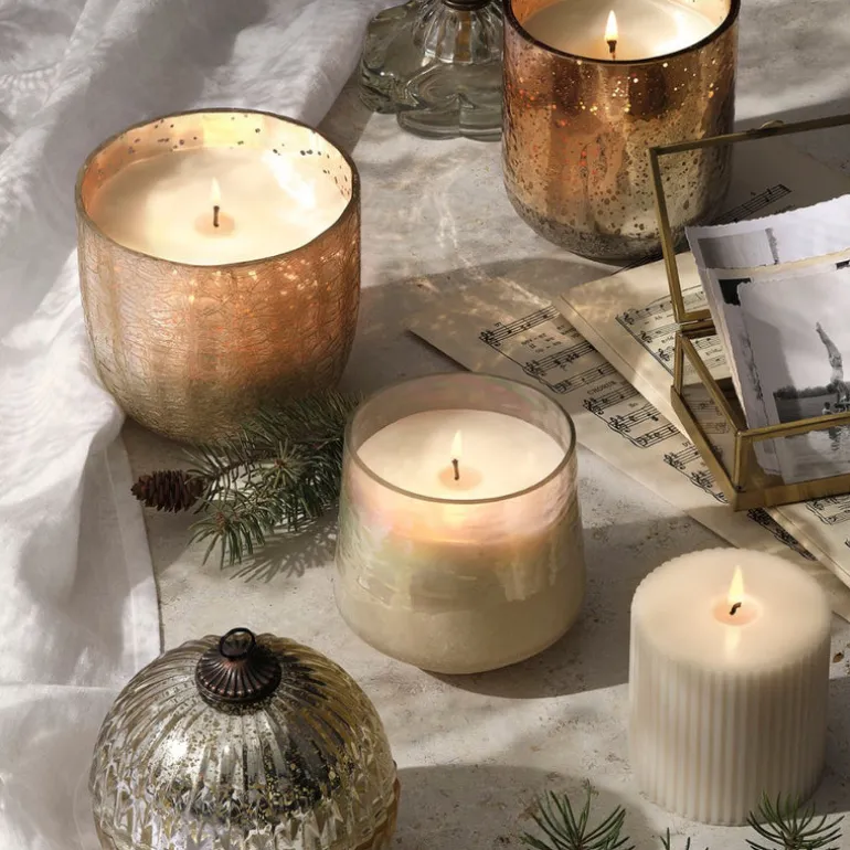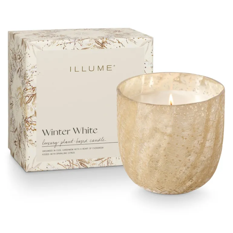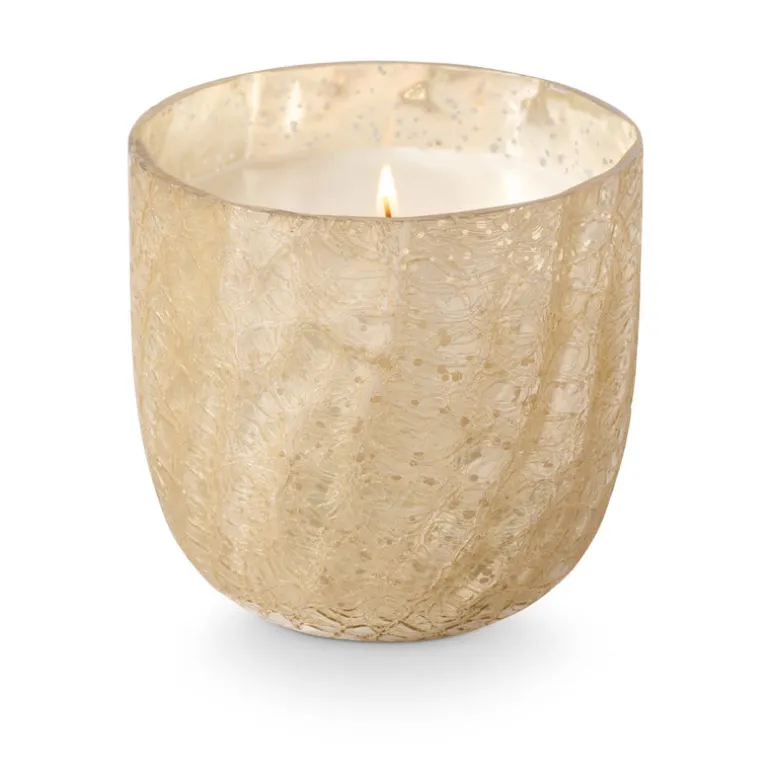 Our large crackle glass candle comes packaged in an illustrated keepsake box, perfect for gift giving.