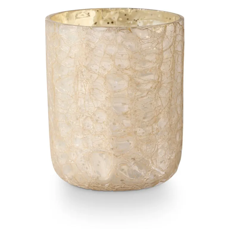Our small crackle glass candle comes packaged in a decorative box, perfect for gift giving.