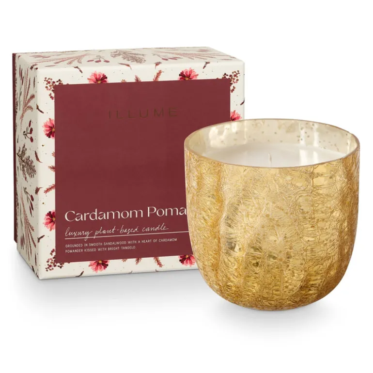 Our large crackle glass candle comes packaged in an illustrated keepsake box, perfect for gift giving.