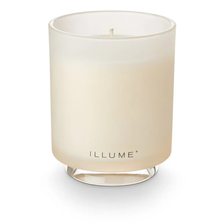 A timeless staple designed with a soft frost finish, colored wax, and a translucent foot for added elegance. Once burned, reuse the glass with our candle refill.