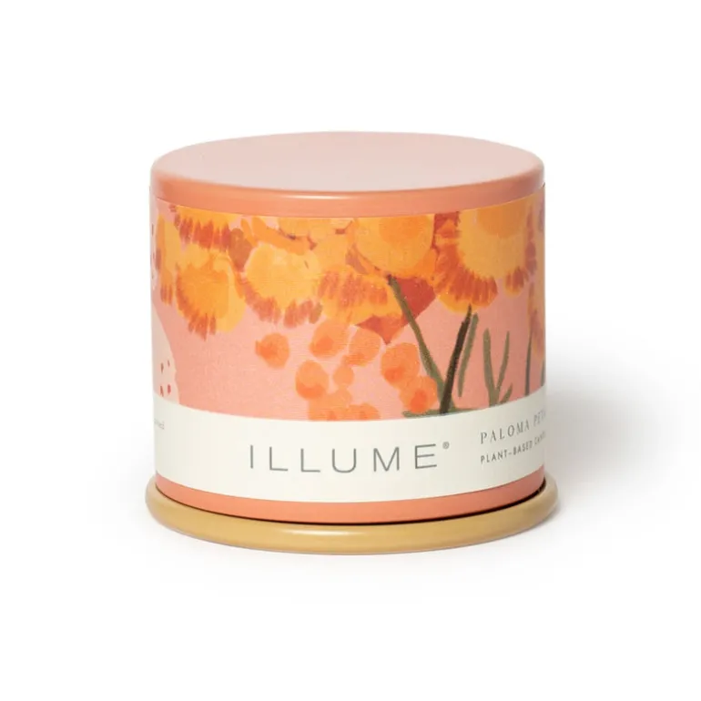 Designed as a pop of pattern, our vanity tins have a full wrap label on textured stock, interior pattern with metallic details, and a color rolled edge to complement the colored wax. We use tin for its lovely illuminating qualities and because it is infinitely recyclable.