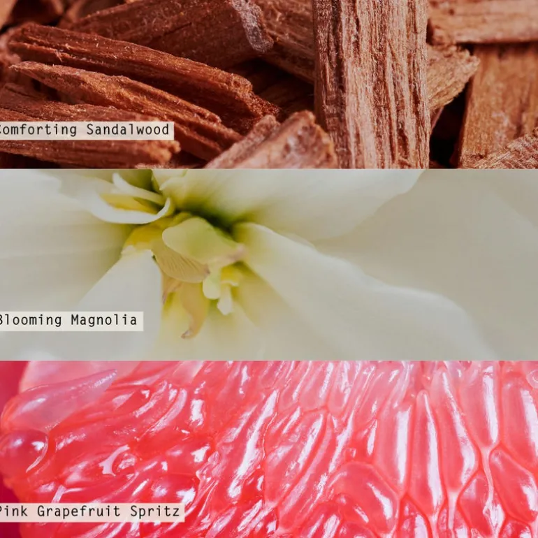 Grounded in comforting sandalwood, with a heart of blooming magnolias, and kissed with pink grapefruit spritz.